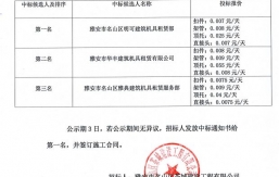 本項(xiàng)目評(píng)審活動(dòng)于2021年10月21日?qǐng)A滿結(jié)束,現(xiàn)將評(píng)審情況公示如下:1、雅安市怡和建筑勞務(wù)有限公司;報(bào)價(jià):13896.0元;得分:93.14;排名:第一名2、四川互盛建設(shè)工程有限公司;報(bào)價(jià):14235.25元;得分:81.03;排名:第二名3、四川鴻酬建筑工程有限公司;報(bào)價(jià):14289.8元;得分:79.54;排名:第三名公示期3日,若公示期間無(wú)異議,采購(gòu)人將發(fā)放中標(biāo)通知書(shū)給第一名,并簽訂合同。雅安市名山區(qū)茶城建設(shè)工程有限公司2021年10月22日...