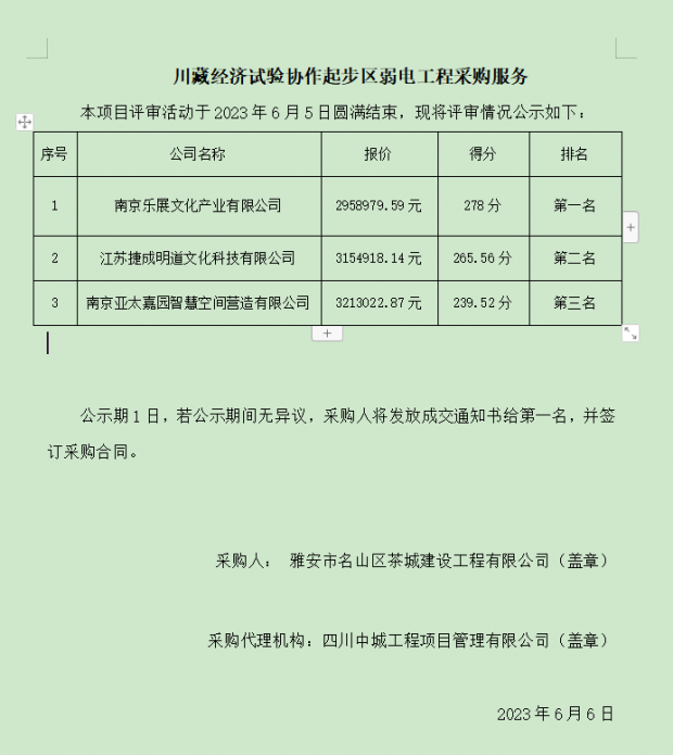 雅安市名山區(qū)茶城建設(shè)工程有限公司及子公司審查 采購(gòu)詢價(jià)結(jié)果公告...
